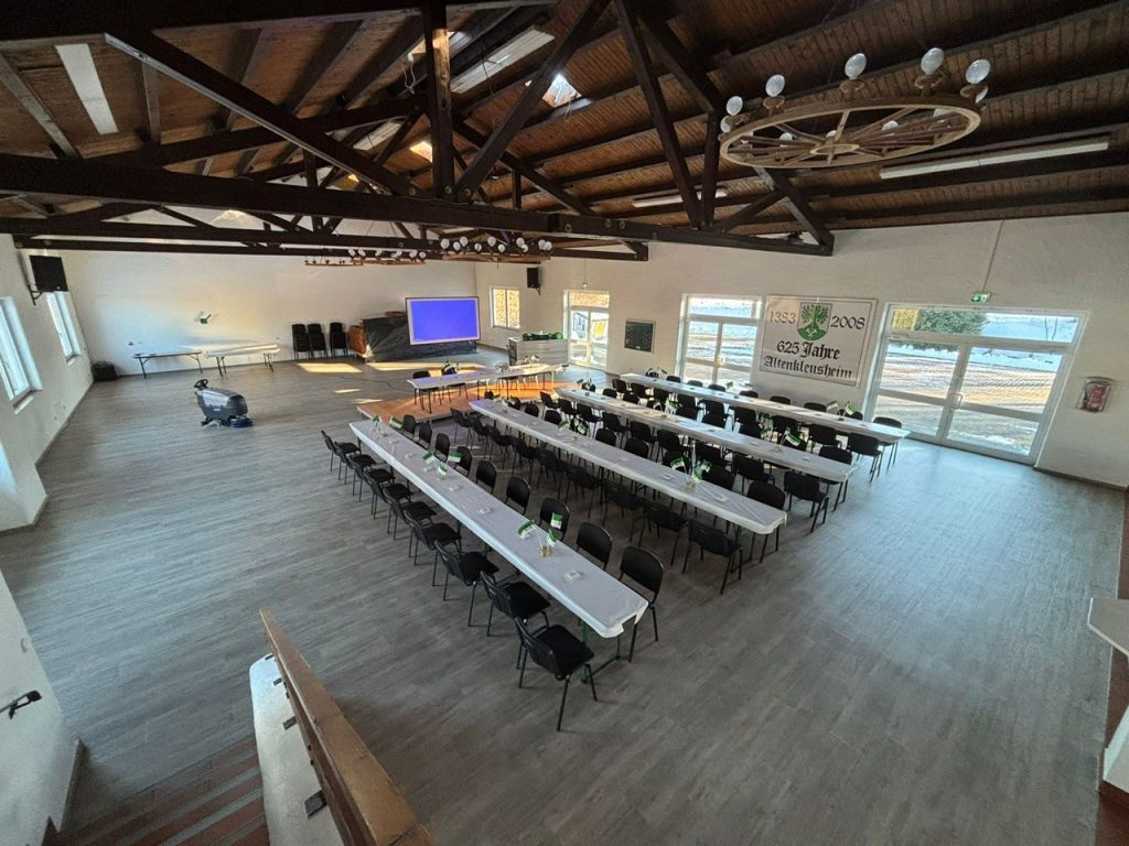 Die Dorfgemeinschaftshalle in Altenkleusheim bildet seit ihrem Bestehen einen Begegnungsort für alle Generationen und dient als Versammlungs- und Veranstaltungsstätte für die örtlichen Vereine. Um diese wichtige Funktion für den Ort in Zukunft aufrecht halten zu können, wird sie mit Hilfe der Kleinprojektförderung neu ausgestattet. Eine neue Mikrofonanlage, eine Bühne, ein neuer Beamer und neue Stühle sollen dafür sorgen, dass die Halle auch in Zukunft als Begegnungs- und Veranstaltungsort der Dorfgemeinschaft dienen kann. Eine neue Musikanlage soll zudem den Emissionsschutz verbessern. Die neue Putzmaschine stellt sicher, dass sich alle wohlfühlen und nach einer Veranstaltung oder Party auch schnell der ursprüngliche Zustand wieder hergerichtet werden kann – und spart dabei Wasser, Energie und Arbeitsaufwand.